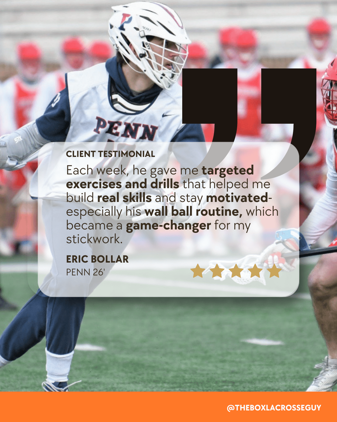 A complete skill development system designed to build recruitable lacrosse players.